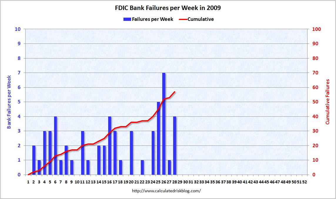 It would Craig. Perhaps the FDIC deposit fund and reserve numbers provide some insight here? In short, I think a variety of relevant measures beyond the number of FDIC closures are available, but aren't as up to date or widely-accessible as the failed institution count. FYI — the pace of failures has accelerated in the past few weeks. The new estimate is 125-150 failures for 2009.