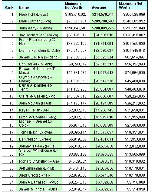 25 wealthiest senators from 2008: