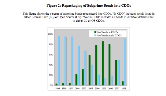 the percentage of subprime bonds that were repackaged into CDOs. Notice the increase and subsequent