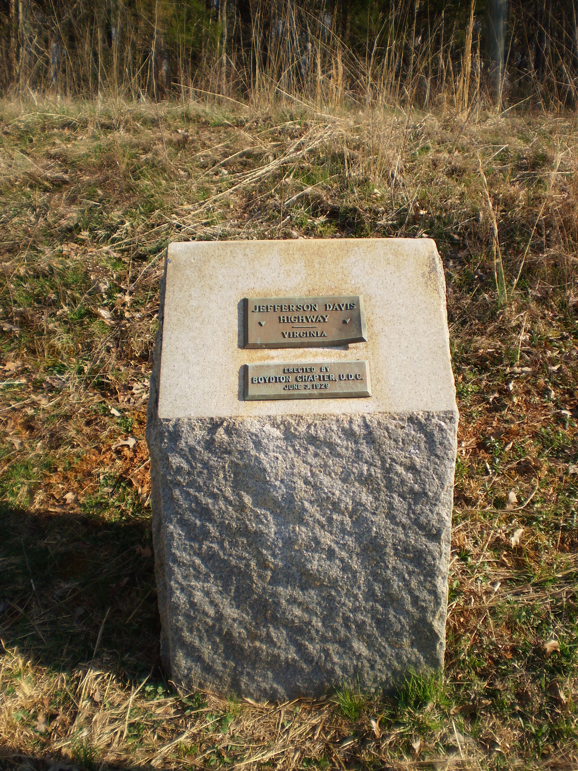 The rest of the trip was pretty uneventful. I passed by a bunch of old gas stations in my rush to get home. But I did go through Boydton to check in on Randolph Macon College's old campus. Tragically, the main building looks in even worse shape than I remember. My final monument picture is of a granite marker for the Jefferson Davis Memorial Highway.