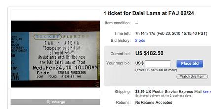 “Tickets for the Dalai Lama, tickets,” intoned a