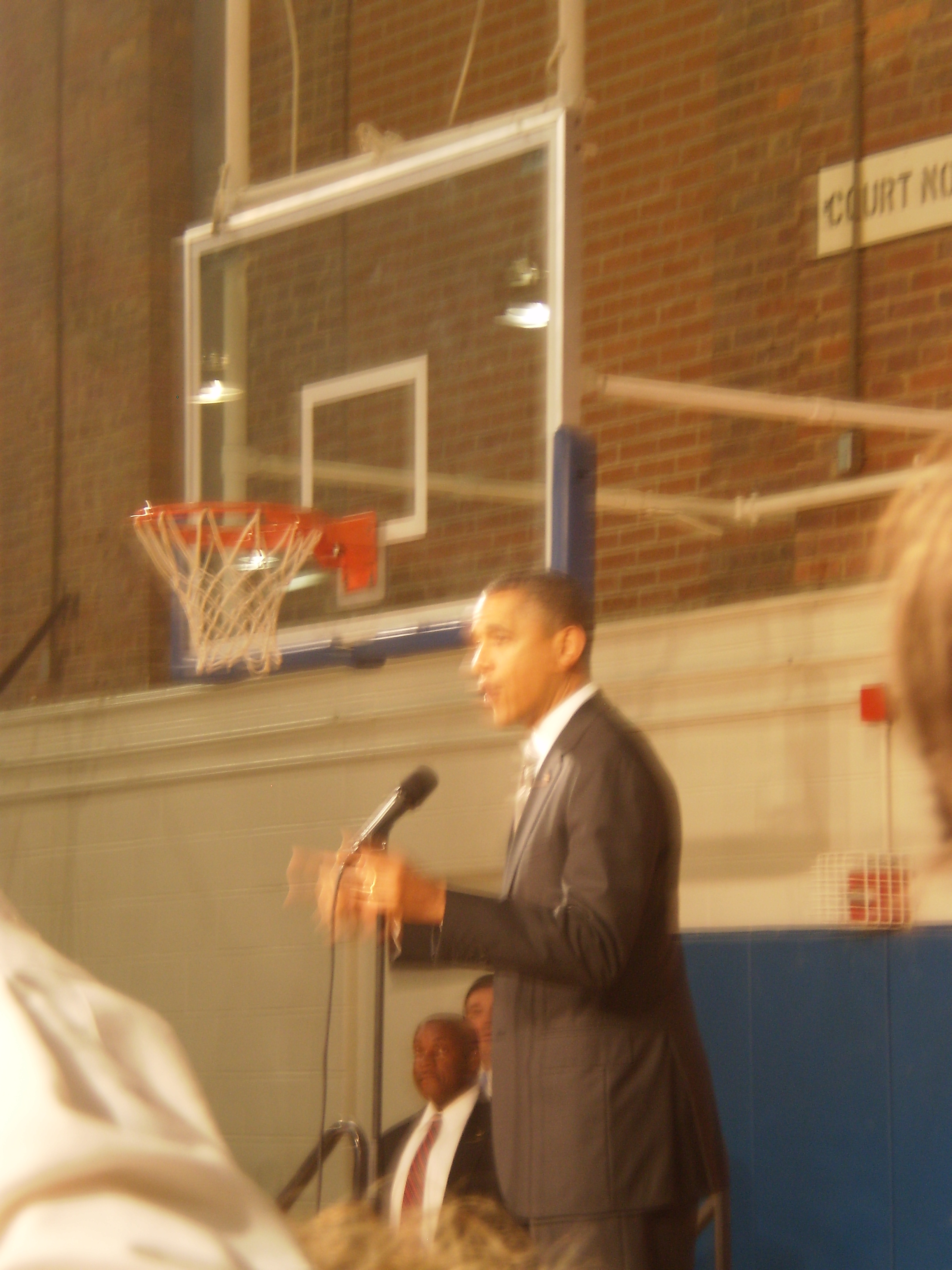 Well, since I last wrote about President Obama's visit to UNC, a few things have happened. Yesterday I was able to get a ticket and then this morning I went — later than I should have — to Carmichael auditorium. I'd been watching people line up from my office window since I don't know maybe 8:30 (which is probably 1/4 of a mile away from the auditorium, which tells you something about the line). The doors opened at 10. But, having gotten my ticket late I figured I'd be nonchalant about this and arrive at the auditorium late as well, which as it turns out appeared to be a rather bad idea … because the auditorium was already full by the time I made it through security. I and everyone else arriving with me and I guess after me was pushed back to the overflow room, Woollen Gym. This happens to be where FDR spoke when he was here. That was a while ago, obviously. We were all clinging to the hope that Obama might make an appearance. For there was a stage with a huge American flag in back and a microphone. As we watched the introductions and then the pledge of allegiance and the singing of our national anthem on the giant screen, all broadcast from Carmichael, things began to look bleak. I was standing there reading Greg Dorr's fabulous book on eugenics, Segregation's Science. In short, I was concluding "it does not look likely."