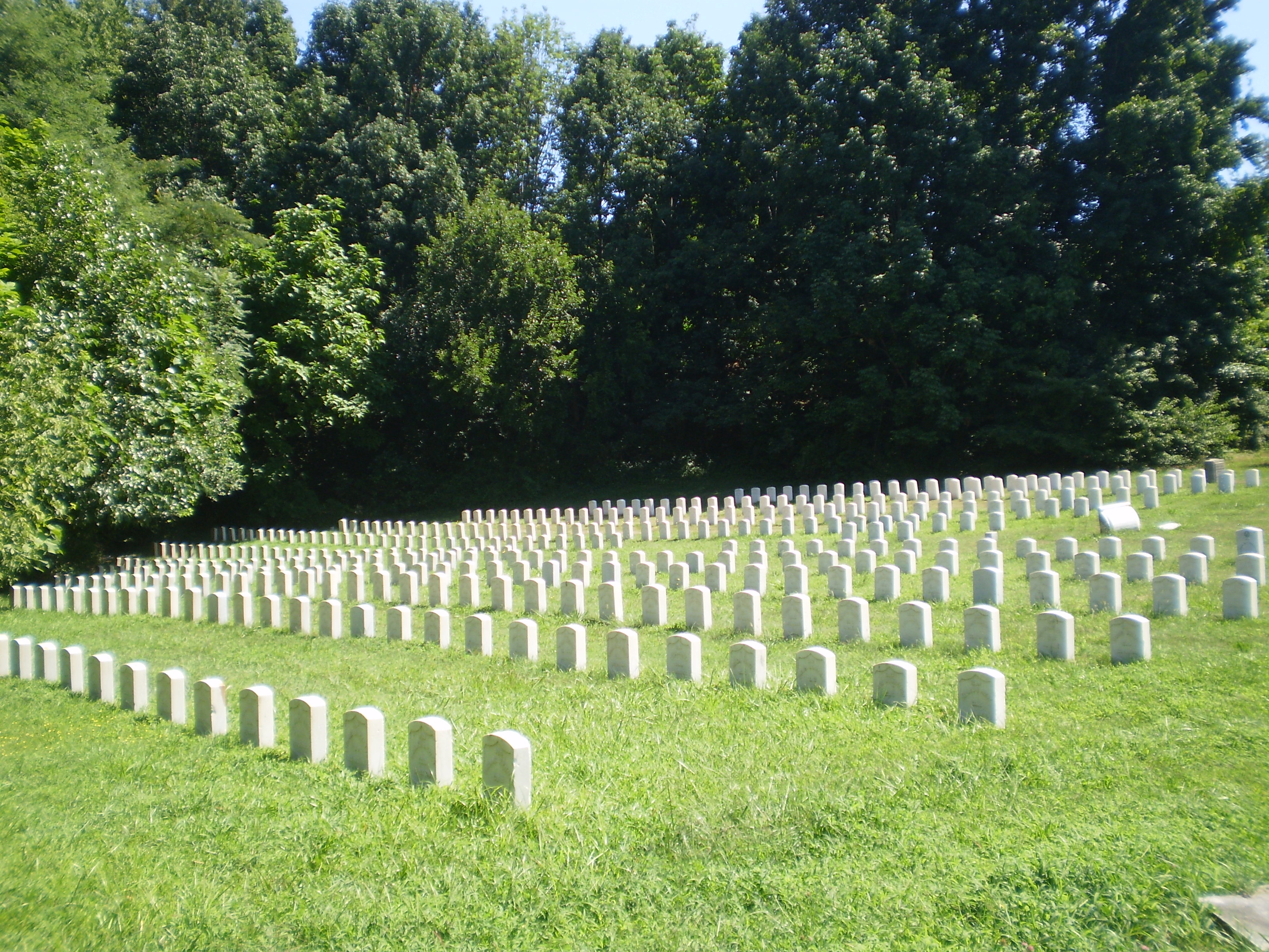 Well, given my interests in cemeteries and memory, Memorial Day is one of my big holidays. And so digging deep in the stock of photographs, I thought that I'd post a couple of pictures I took last summer of cemeteries. The first is the section for Union soldiers in the Mount Moriah Cemetery in West Philadelphia. I was there with Norman Stein, checking out the cemetery, which has undergone a real transformation of late.