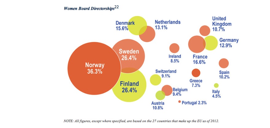 the boardrooms of many European countries. Above are figures from Catalyst on the percentage of