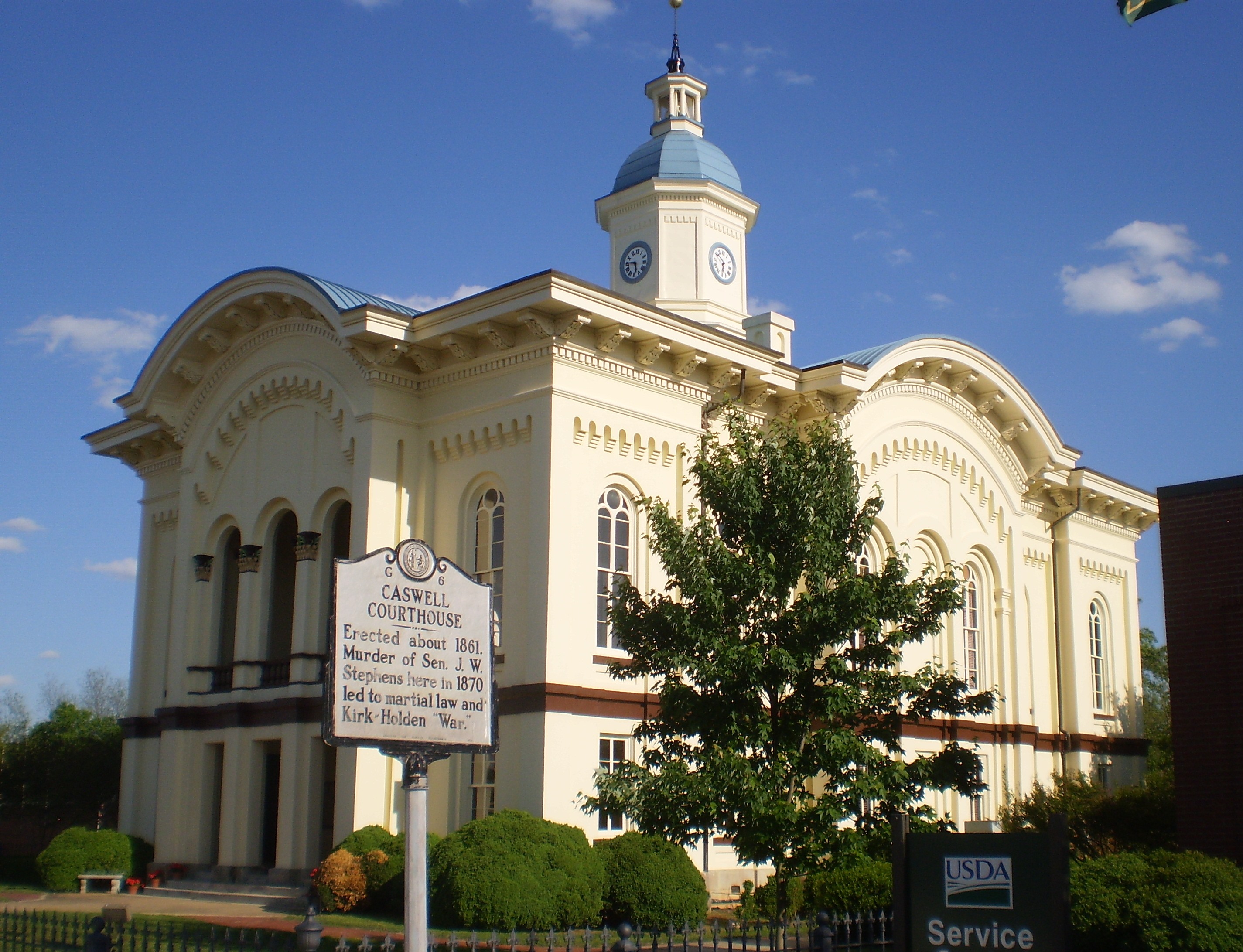 Well, we're back at Halloween — my favorite holiday. In the past I've asked about whether houses in rural Virginia are haunted. But this time I want to post a picture of a courthouse here in North Carolina that some people believe is haunted: it's the Caswell County Courthouse up in Yanceyville. You know the one, with a segregated World War I monument out front. But the haunting is related to a racially charged murder there some decades before the World War, back when we were still working through the aftermath of the Civil War.