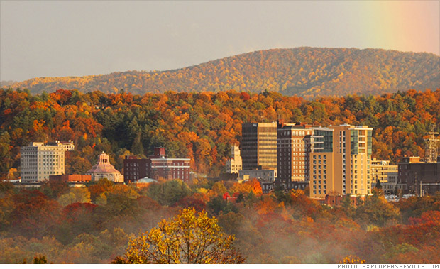 Asheville, NC and I did not cheat. The architecture of the red-tiled church roof on the left is pretty unique.