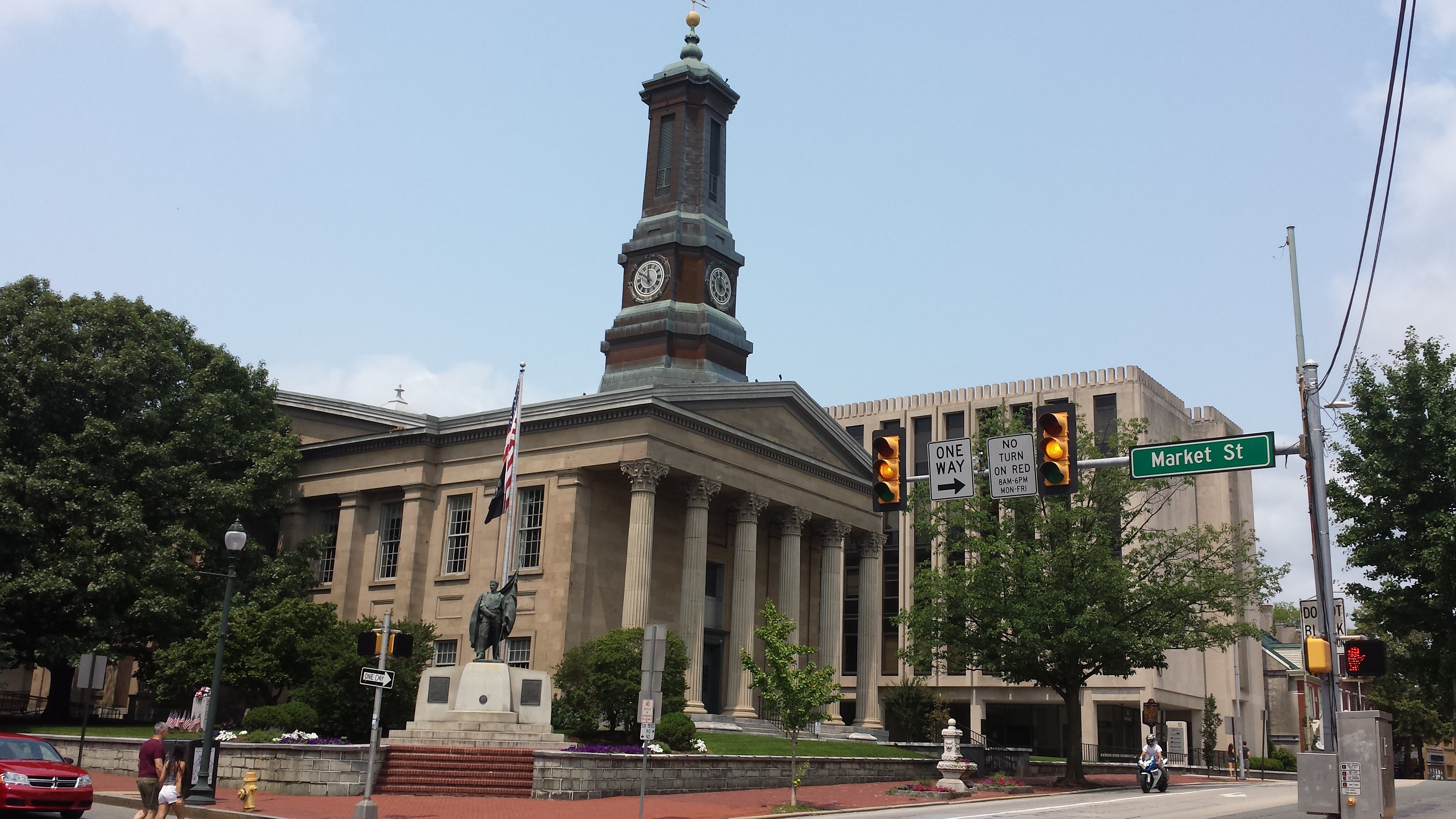 Amidst all of the discussion of the future of Confederate monuments, I want to talk about a monument on the fiftieth anniversary of the end of the Civil War from my hometown of West Chester, Pennsylvania and its use by Horace Pippin. I went out to take a picture of it after I saw Horace Pippin's painting of the Chester County Courthouse at the Brandywine River Museum's exhibit of his work. (There's still a little time to see that wonderful exhibit, if you happen to be in the Philadelphia area.)
