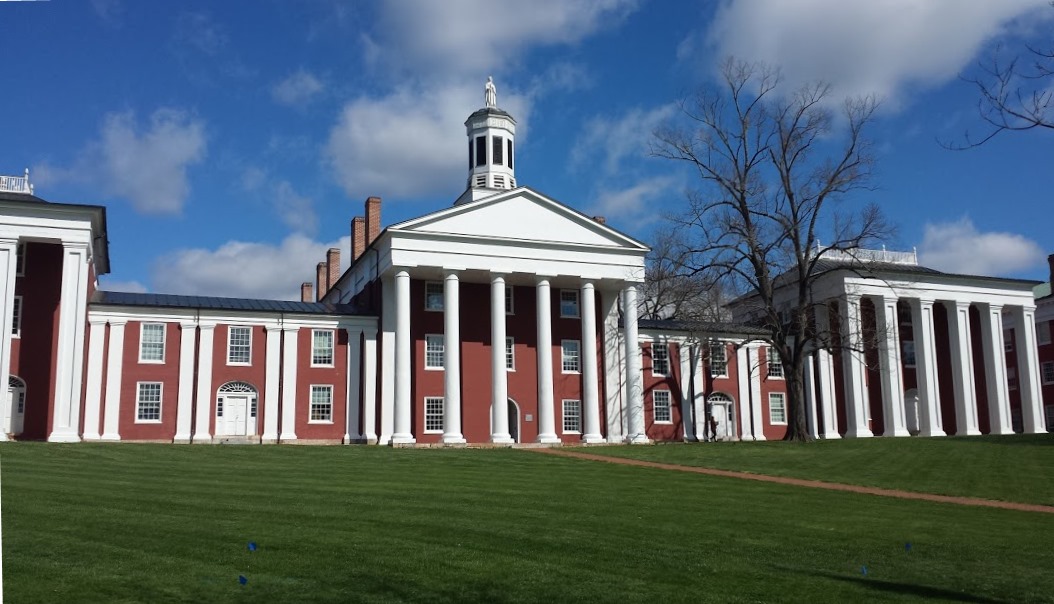 The image is of Washington College (now Washington and Lee), where in March 1853 on the upper floor of the central building students in the literary society debated, "Which has conduced more to the advancement of civilization, the mariners compass or the art of printing?"